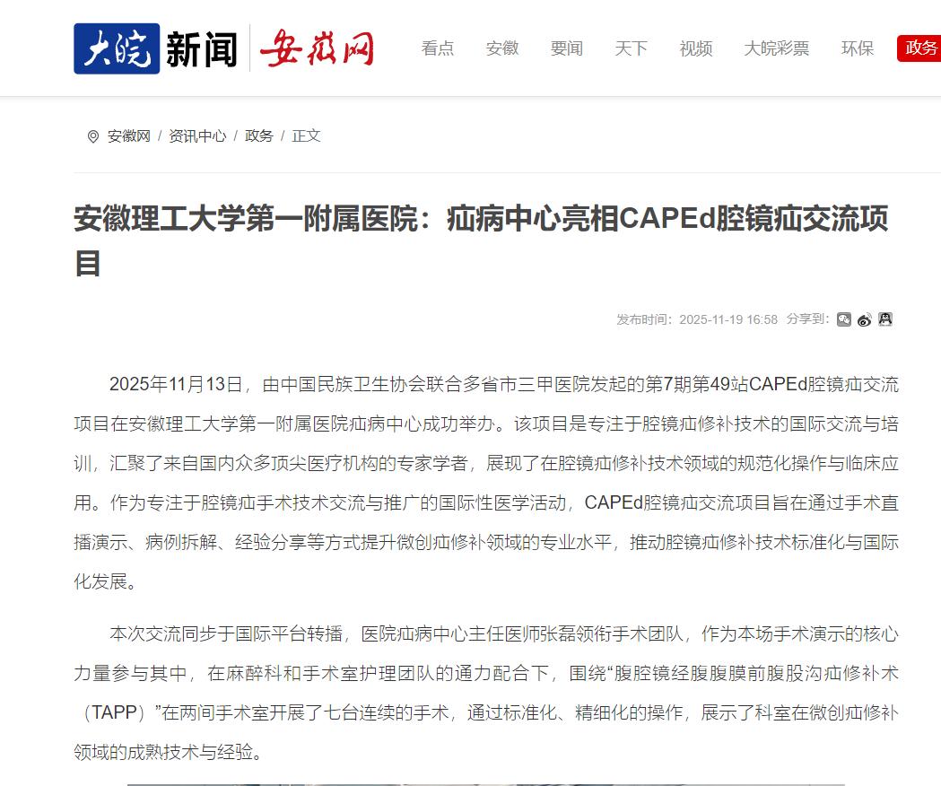 安徽网报道:医院疝病中心亮相CAPEd腔镜疝交流项目