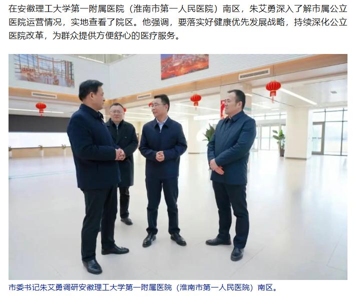 淮南日报报道:市委书记朱艾勇调研医院南区