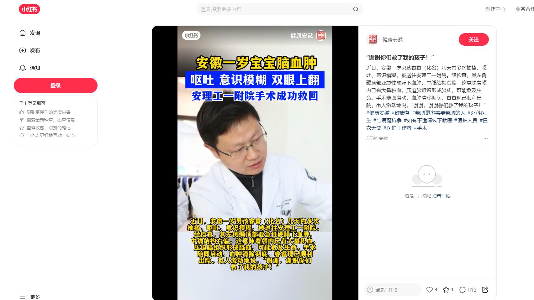 健康安徽报道:医院顺利救治一岁脑出血男孩