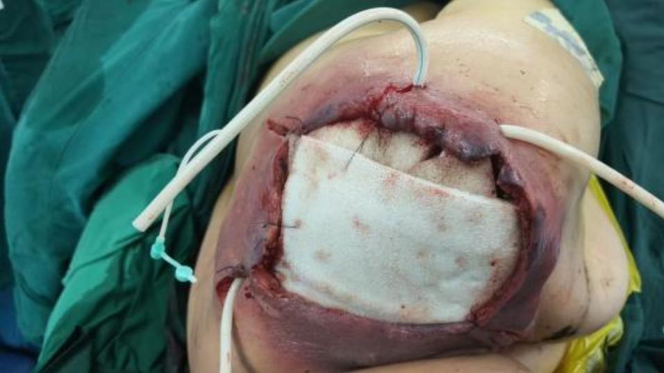 第二次手术:创面清创、扩创术缝合术+任意皮瓣转移术+负压封闭引流术