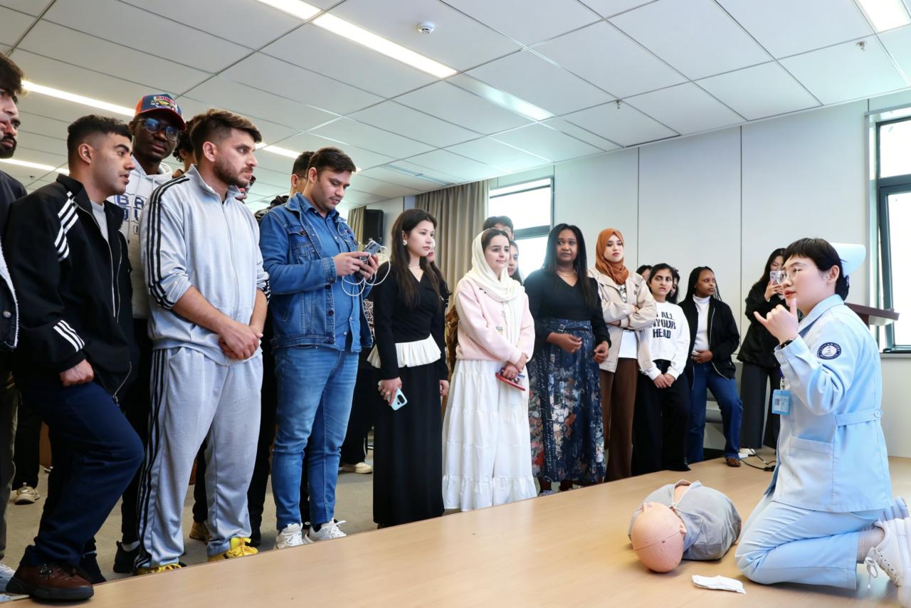 春和景明,惠风送暖。2026年4月15日,学校国际学院留学研究生们一起走进医院南区,探访校第一附属医院。校国际学院副院长李争、教师刘妍,院党委委员、副院长谢应海,中医科、急诊急救中心专家及相关科室共同为来自世界各国的留学生们开启了一场别开生面的“南区开放日”活动。