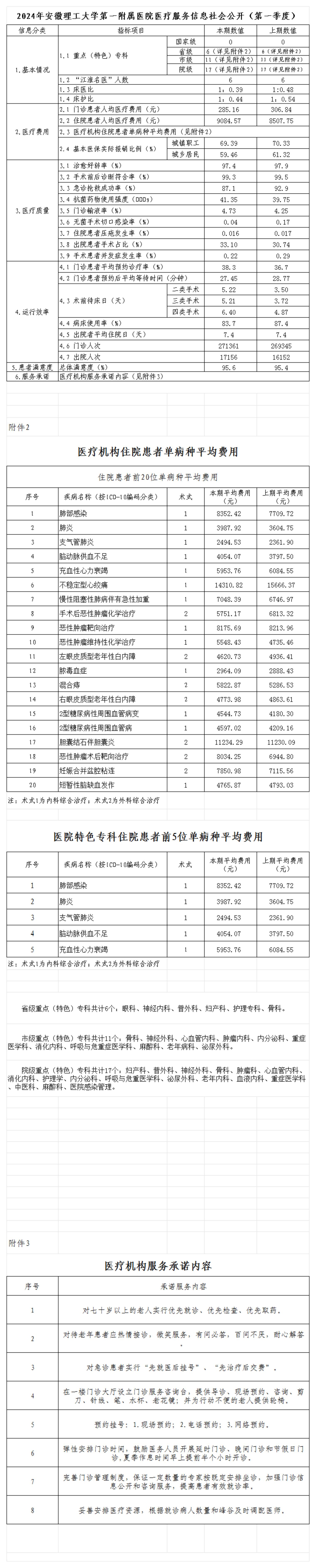 2024年安徽理工大学第一附属医院医疗服务信息社会公开(第一季度)