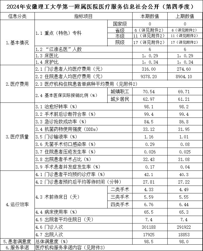 2024年安徽理工大学第一附属医院医疗服务信息社会公开(第四季度)