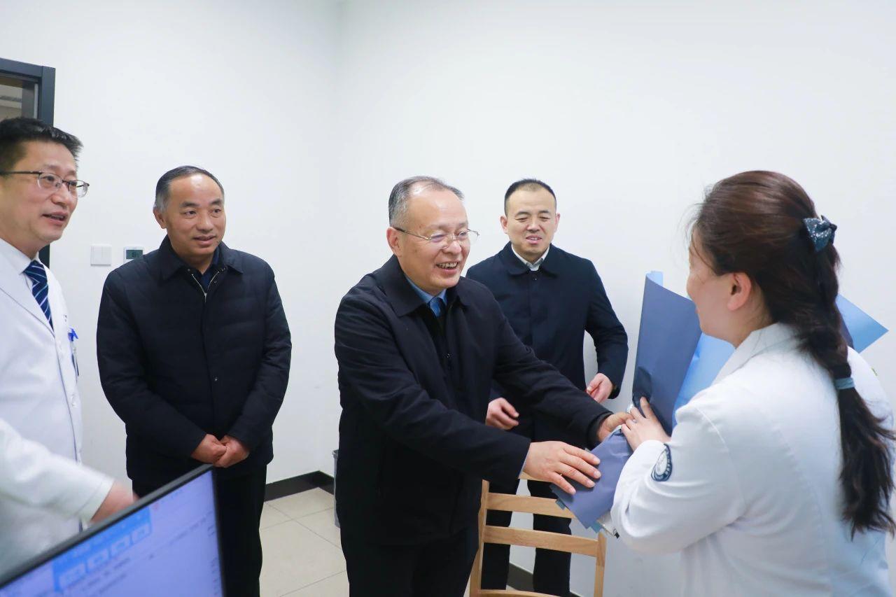 新春送暖,岁寒情深。2025年1月25日上午,校党委书记郭永存,校党委常委、副校长张平松一行来到医院南区开展春节前慰问活动,为一线医护职工送去节日的温暖与祝福。校党政办公室、组织部等相关负责人参加慰问,院党委书记邵飞,院党委副书记、执行院长刘新矿陪同慰问。