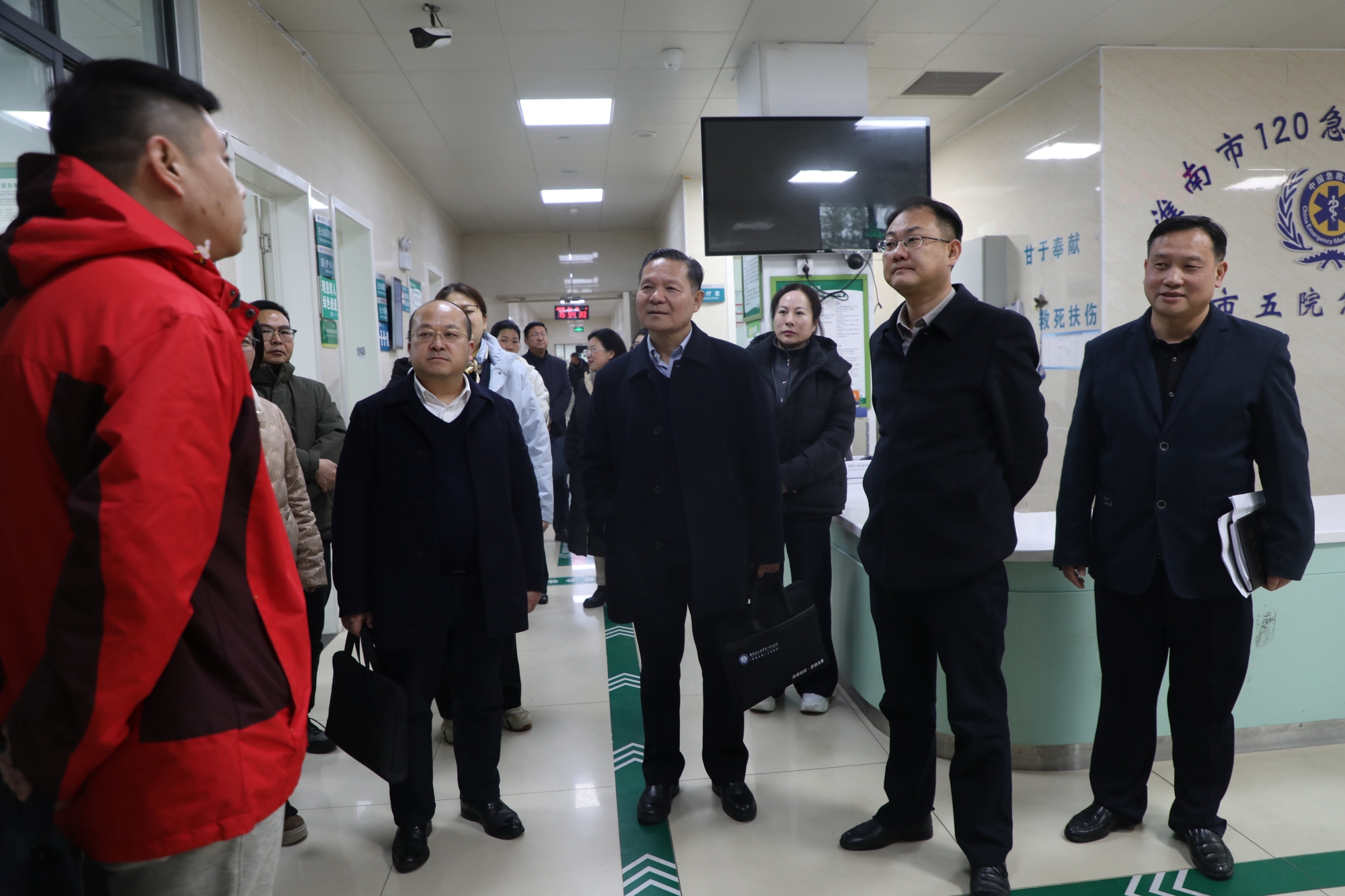 1月19日,医院院长李晓强,党委委员、副院长谢应海率领部分职能科室负责人,赴潘集五院开展调研交流活动,区委副书记、区政府代区长徐杉,潘集区政府副区长吴科娟子等区领导及相关单位负责人陪同调研。