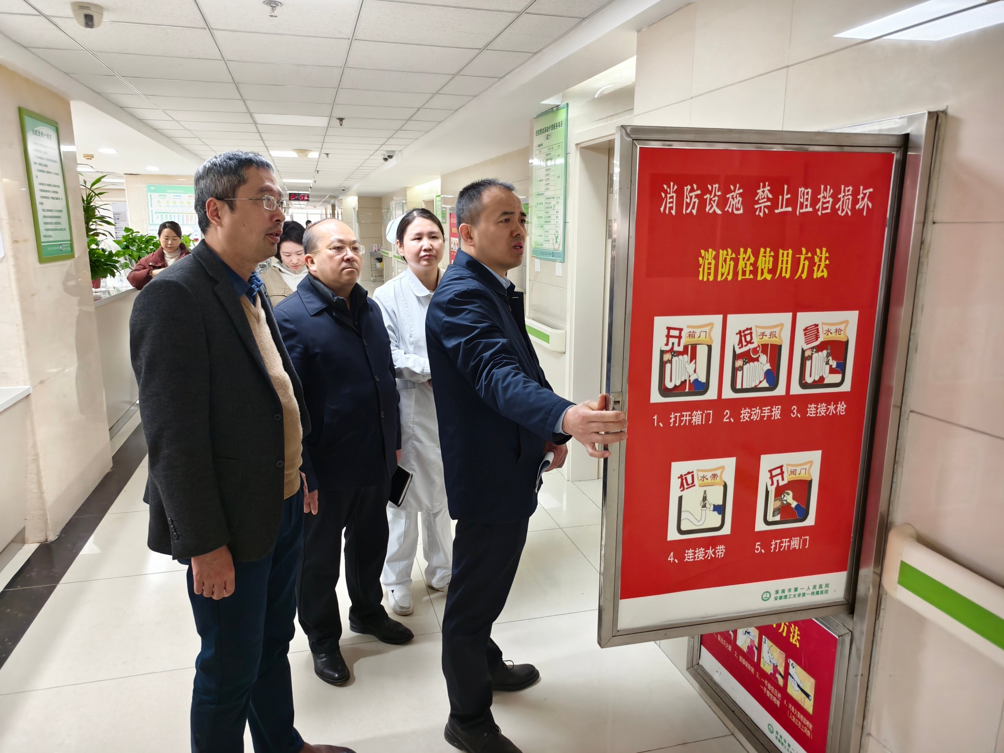 为深入落实安全生产工作要求,3月6日上午,医院党委书记邵飞率队深入一线开展安全生产检查,全面排查安全隐患,切实筑牢医院安全生产防线。院党委委员、副院长谢应海参加检查。