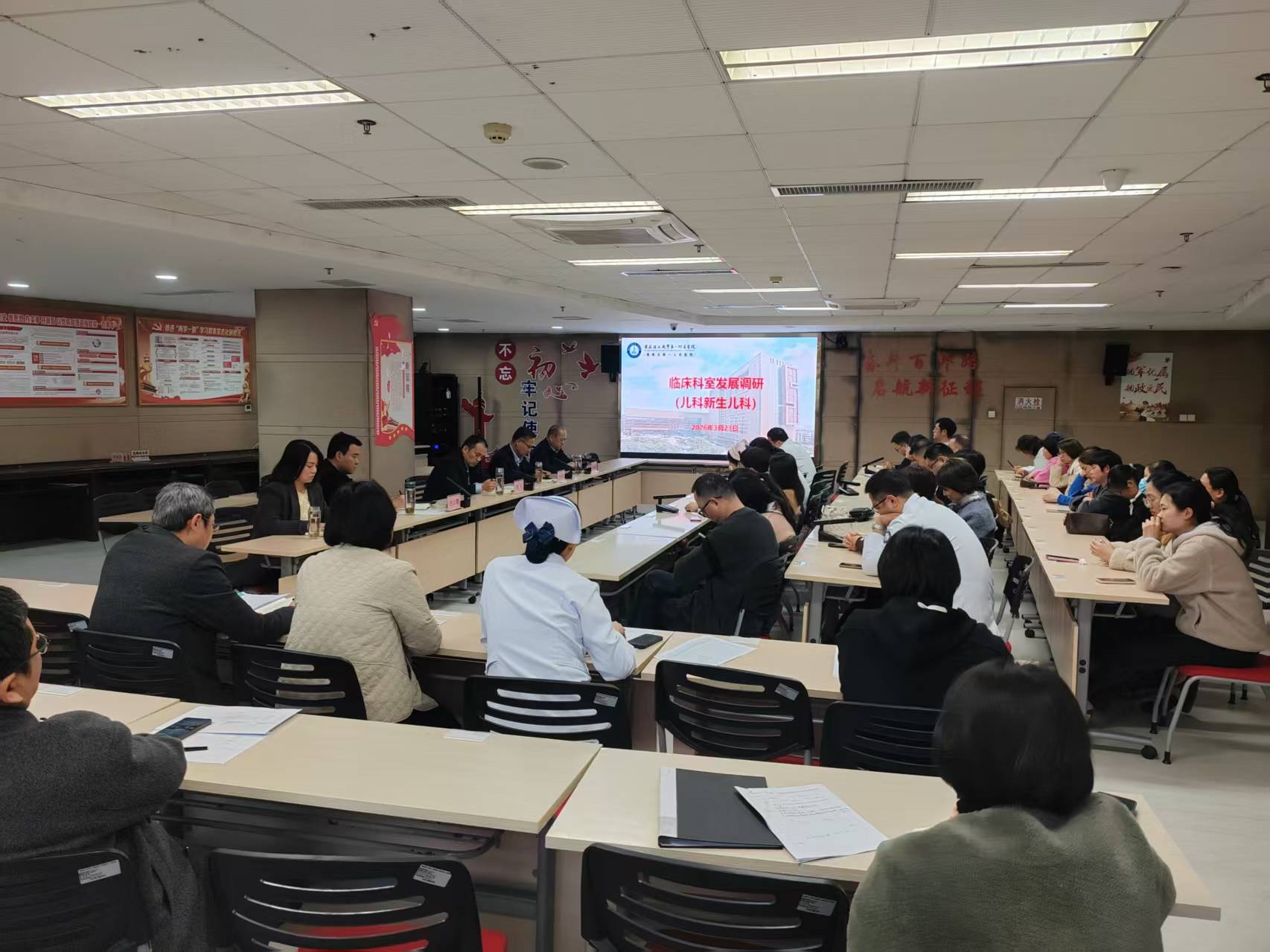 儿科、新生儿科医护人员、相关职能科室负责人参加会议。