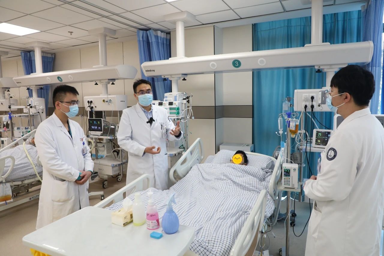 伤员正值壮年,是家里的顶梁柱。接到消息后,他年迈的父母、爱人和三个孩子先后赶来南区,情绪濒临崩溃,一旦失去了亲人,会对整个家庭造成毁灭性打击。急诊急救团队立刻为患者进行脑复苏治疗,将患者转入急诊EICU实行冬眠疗法,同时给予他抗癫痫治疗和机械通气。经过整整七十二小时的冬眠治疗,患者逐步复温,到了第五天已经基本上恢复到正常体温,去大脑皮质状态缓解,四肢不再抽搐,也有了自主意识,可以睁眼了,这说明患者的脑复苏是非常成功的!