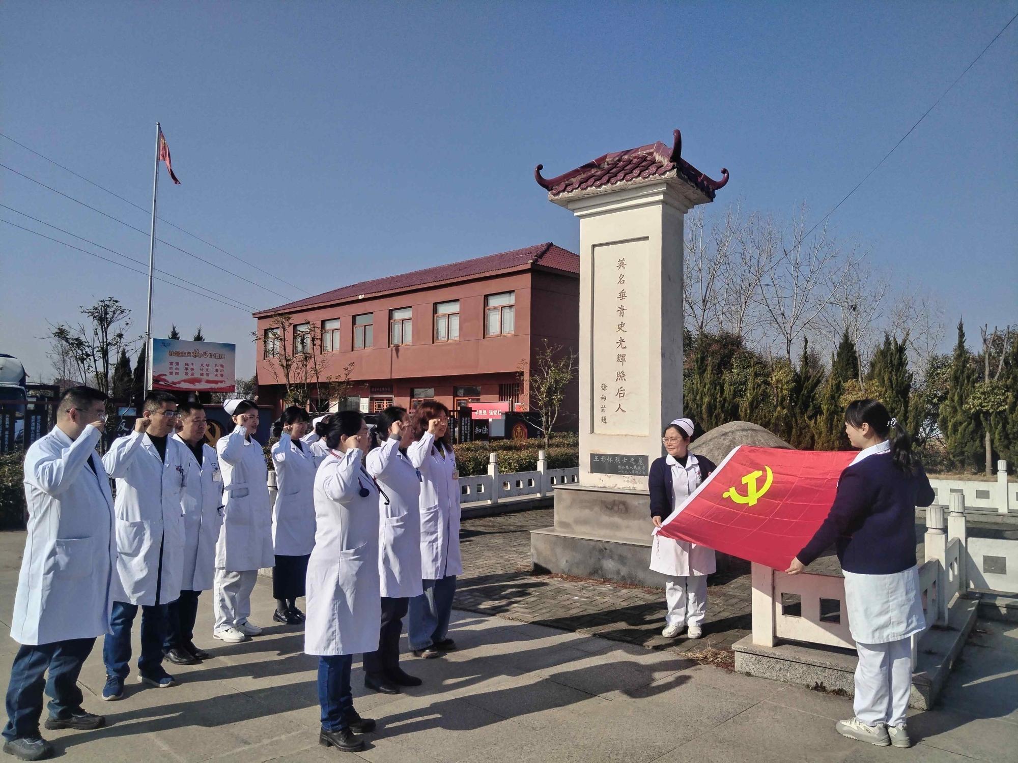 义诊活动结束后,参与活动的高新区分院支部委员会党员及医务人员,跟随汤王村驻村第一书记任少伟开展红色教育暨主题党日活动。一行人先后参观汤王村村史馆与烈士事迹陈列馆,深入了解村庄历史变迁、乡土文化及革命英烈的英勇事迹;最后在烈士墓前,全体党员医务工作者面向党旗重温入党誓词。