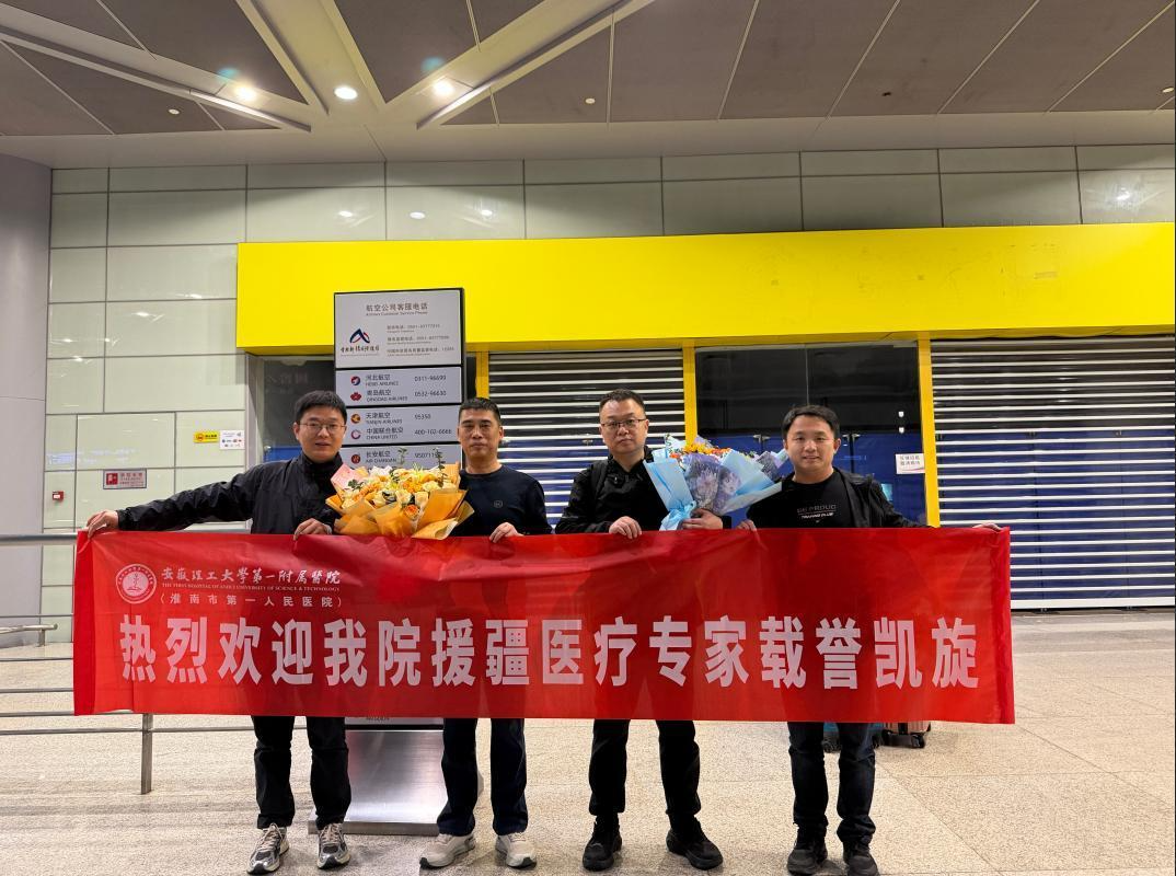 二人作为安徽省第十一批援疆医疗队队员,受省委组织部、省卫健委统一委派,远赴新疆和田皮山县人民医院开展医疗支援。援疆期间,两位专家坚守岗位、履职尽责,倾情奉献、不负使命,高质量完成各项帮扶任务。医院同事代表专程前往机场,手捧鲜花热烈迎接两位援疆专家凯旋。