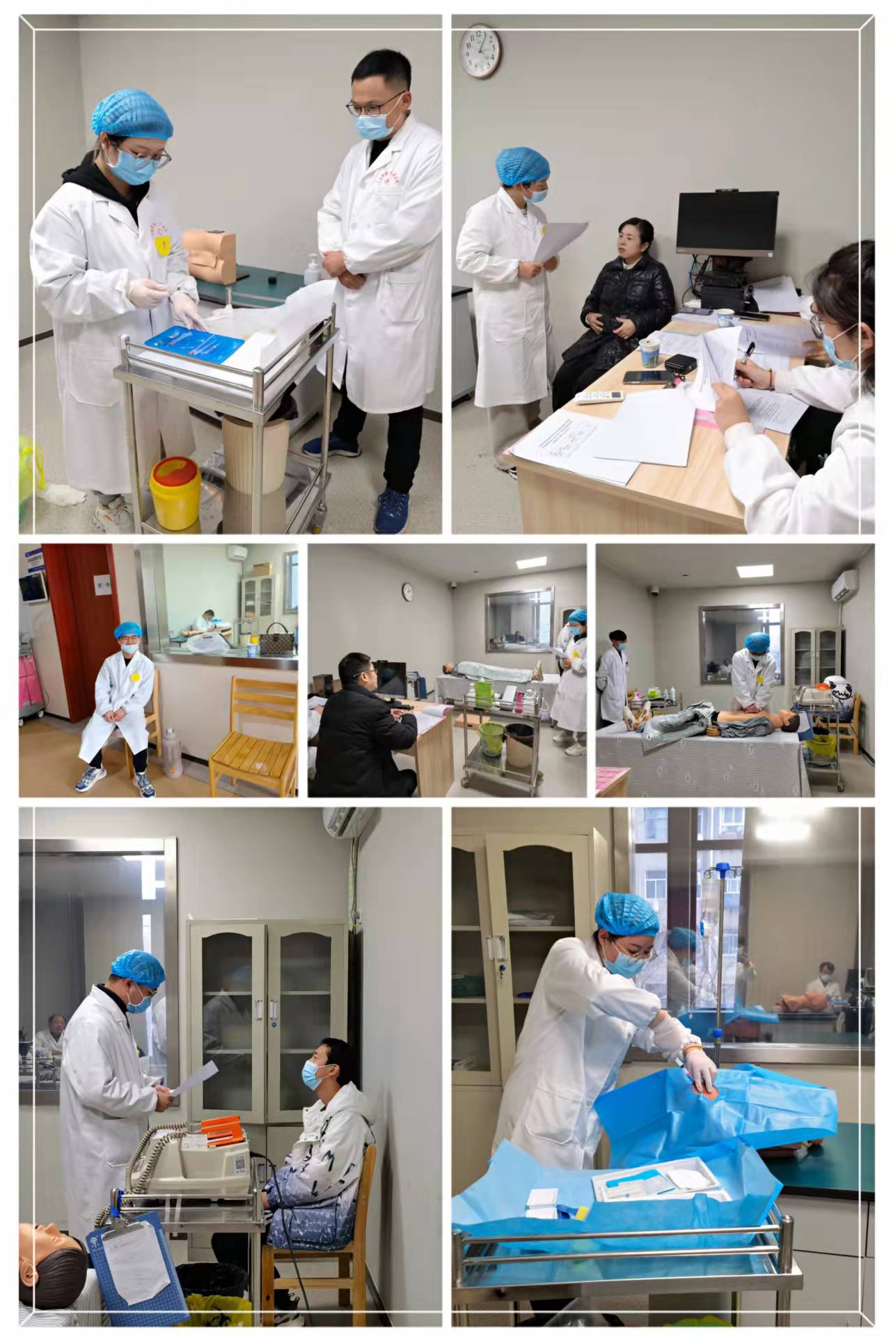 2022新年伊始,在医院教育处的指导下,技能中心主任陈海庚的大力支持下,麻醉科教学主任赵媛媛的精心组织和命题,多名相关基地教学主任、带教老师以及标准化病人积极参与下,由麻醉专业规培基地组织的全真模拟规培结业临床实践能力考核在我院规培基地考场举行,参加这次模拟考核的包括全体麻醉基地规培学员。